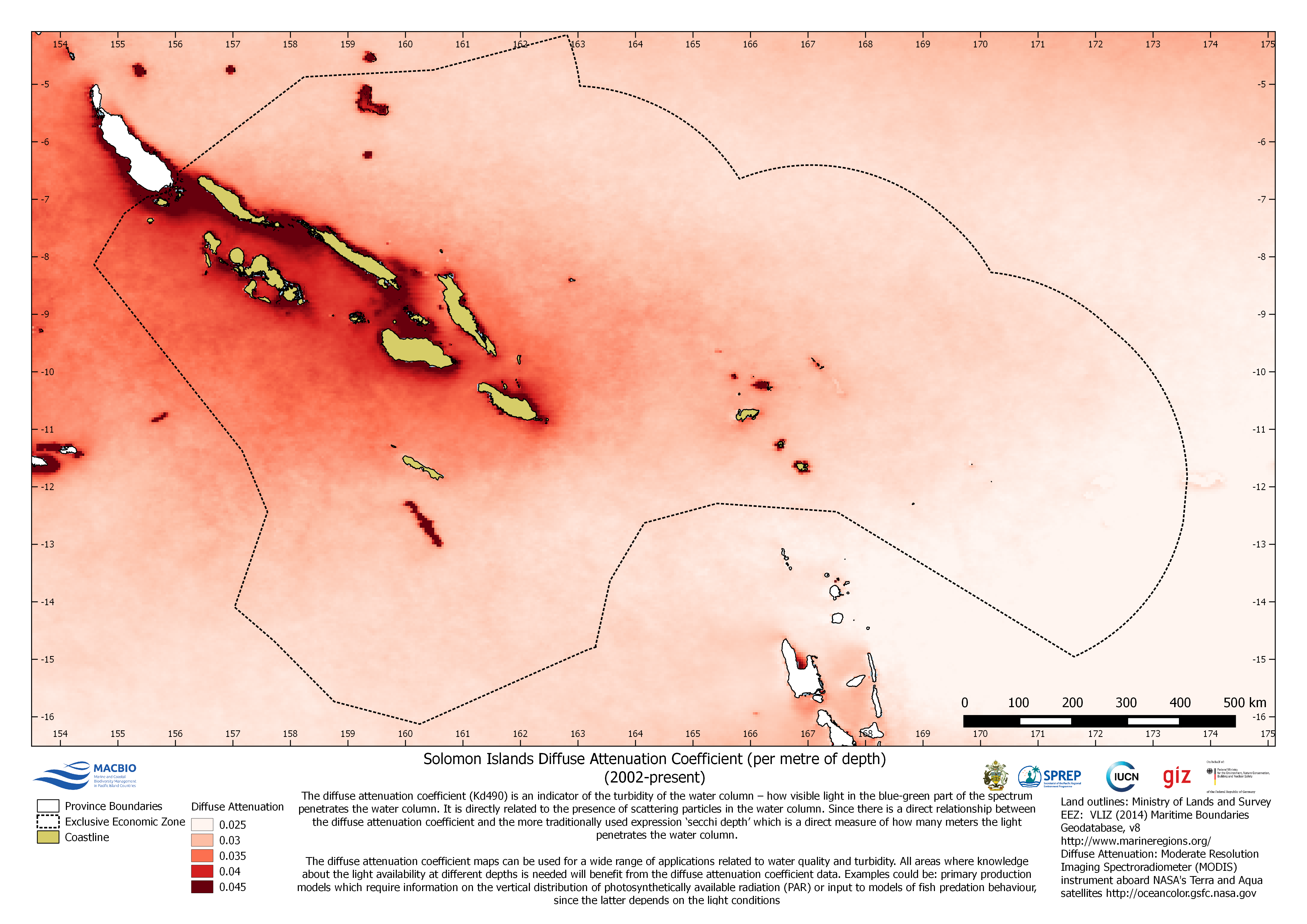 Solomon Islands Diffuse Attenuation Coefficient (per metre of depth) (2002-present)