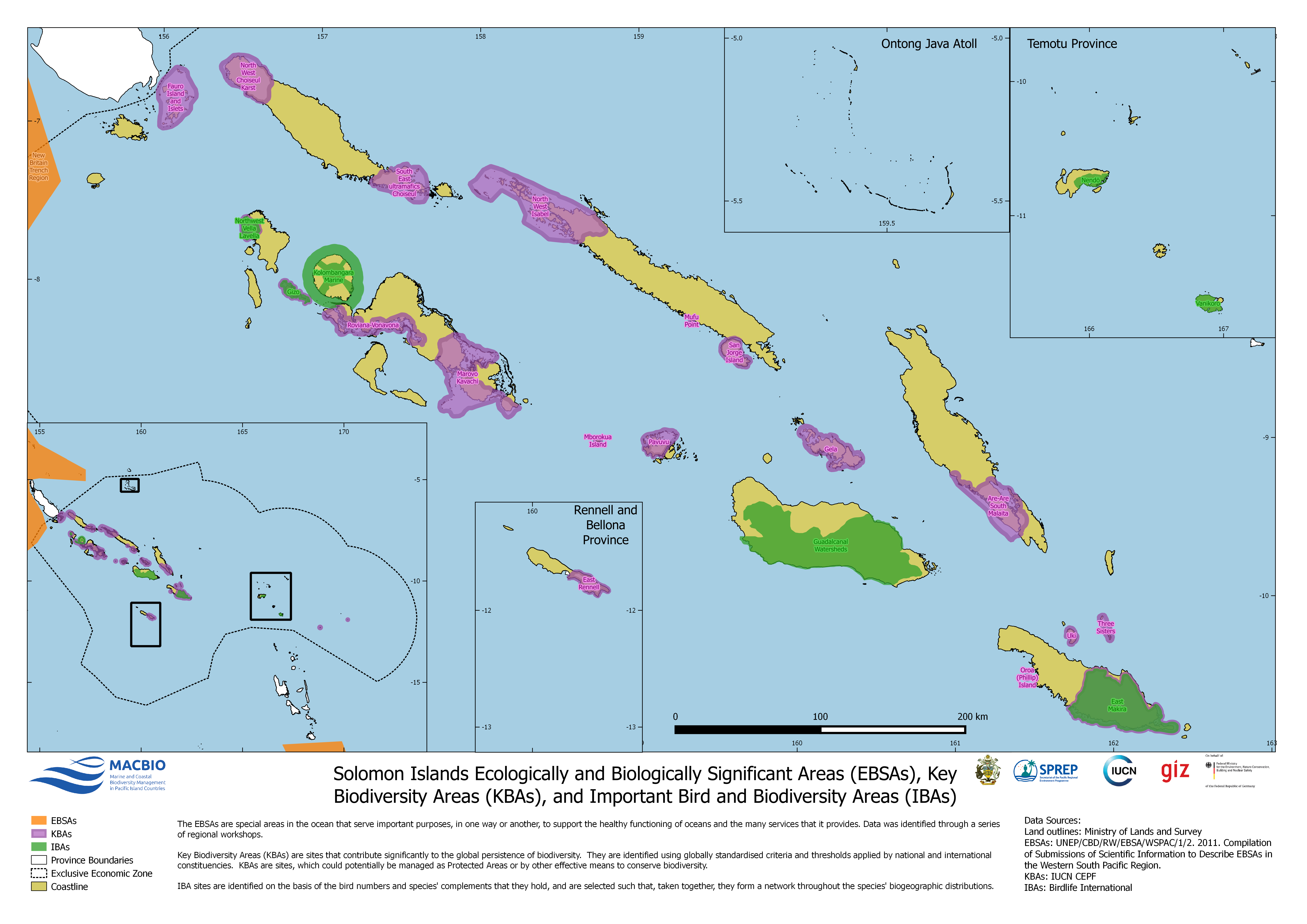 Solomon Islands Ecologically and Biologically Significant Areas (EBSAs), Key Biodiversity Areas (KBAs), and Important Bird and Biodiversity Areas (IBAs)
